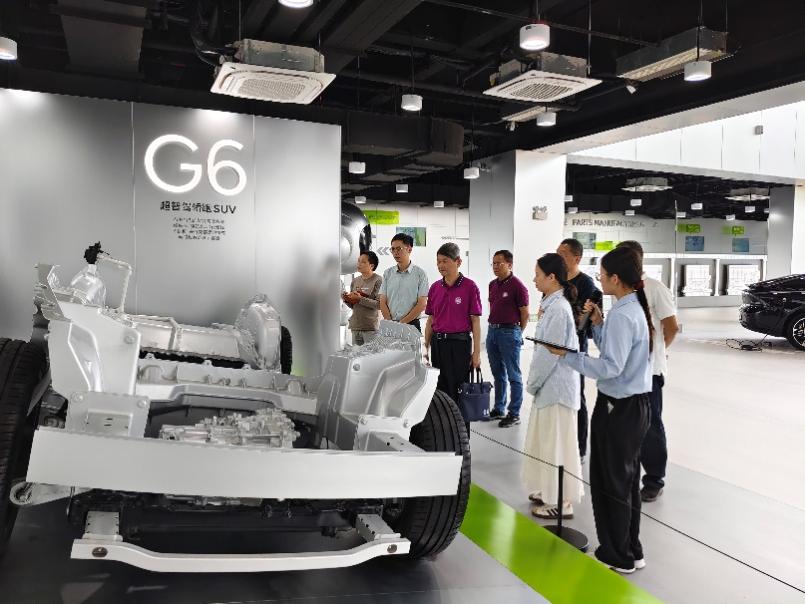 活动首站,在肇庆高新区劳动社保局党支部副书记、副局长、区劳动就业服务中心主任柴子龙,泰克教育肇庆分公司的陈威然经理的陪同下,我院一行参观了小鹏汽车展厅及厂房产线,观摩智能网联汽车核心技术及生产流程,了解新能源与智能汽车产业的人才需求和技术发展趋势。