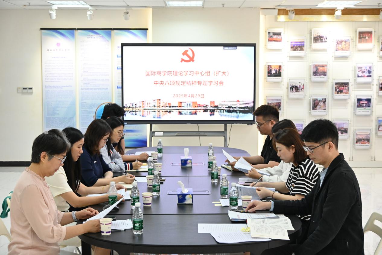 国际商学院党总支将把落实中央八项规定精神融入学院发展的各项工作中,以实际行动,稳扎稳打,打赢合格评估大决战。