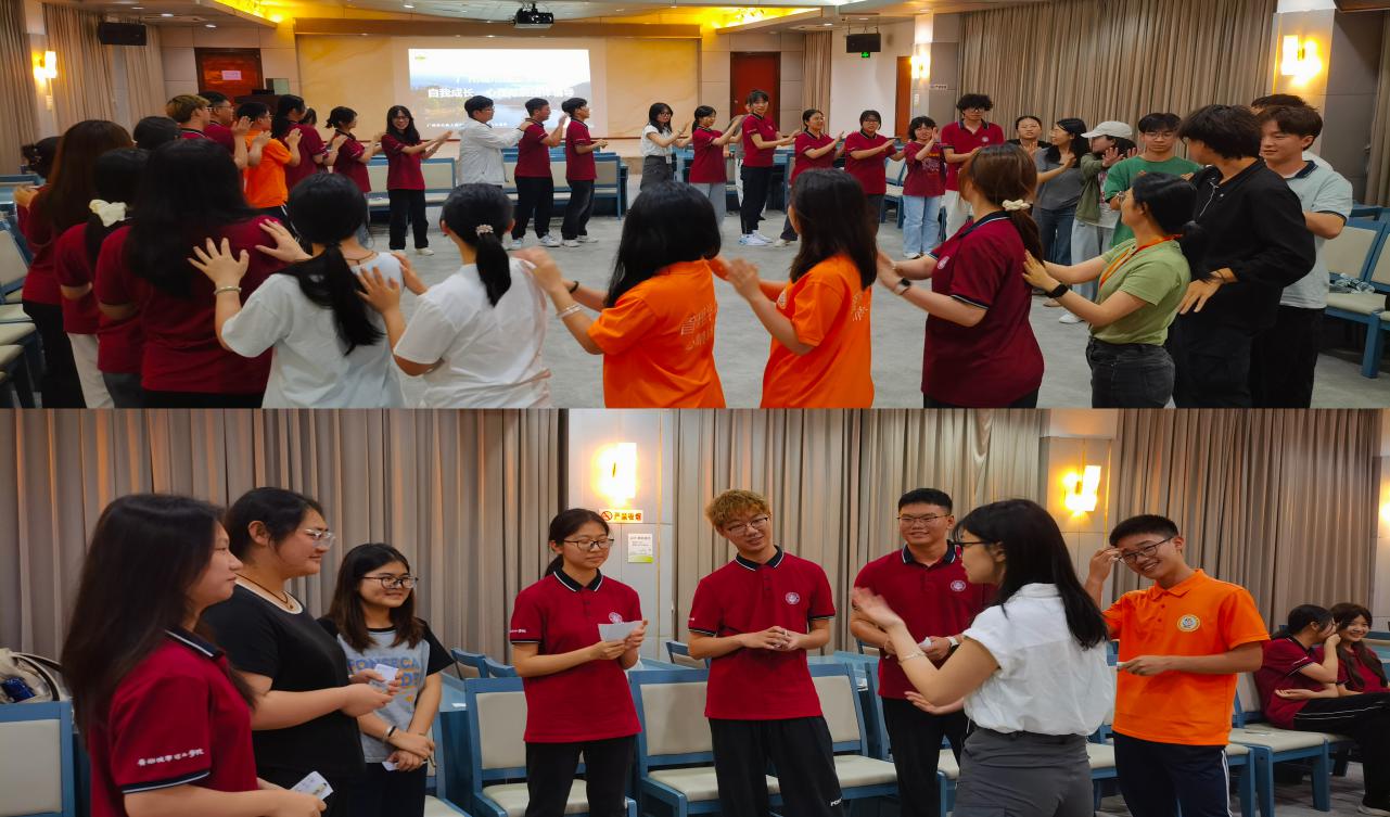 研学的第二环境是趣味团体辅导,科普周老师让同学们聚集在一起围成一个大圆圈。以“数字身体游戏”进行团体破冰,同学们根据数字被分为若干小组,每组根据指令做出与数字相关的肢体动作,在快速反应与肢体协作中,同学们打破陌生感,增强身体协调性和团队配合度。接着是“记忆卡片”环节,通过辨别每张卡片所代表的相应数字,在一分钟之内依次找出30张对应卡片,同学们在此过程中分享经验,在默契配合中增进感情。在“赠予赞美卡片”环节中,小组里的每位同学拿到空白卡片,为组内其他成员写下赞美话语。从赞美与认可中听见彼此的声音,传递力量,拉近了彼此的关系,进一步提高了团队凝聚力。最后是“快乐拍手”环节,所有人喊出节奏,互相配合,专注投入,通过肢体互动和反馈,让同学们卸下心理包袱,感受团体的合作快乐。