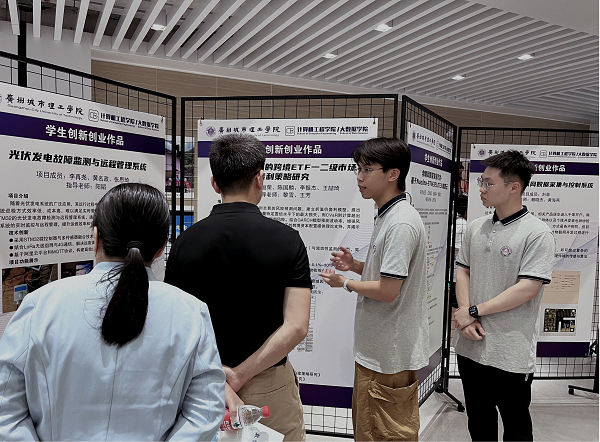 学生向企业嘉宾展示创新创业作品(学院团委宣传部 摄)