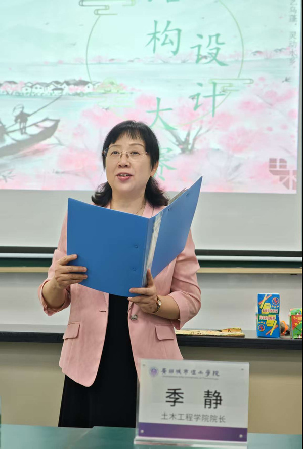 季静在开幕式致辞中表示,结构设计大赛已成为我校土木工程学科大学生积极参加的极富创造性、挑战性的科技创新“大舞台”,有助于提升学生的专业技能,培养团队合作精神和解决问题的创新能力。她希望各位同学能够通过这次比赛进一步激发学习兴趣和创新意识,加深对专业的理解,努力学习,夯实基础,逐渐成长为优秀的新工科复合型人才。