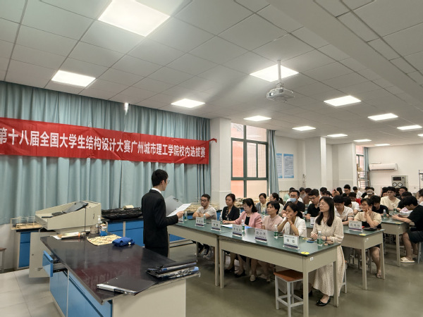 本网讯(记者 彭婧 王秋湛)为营造浓厚的校园学术氛围,促进科技创新活动的普及性,提高学生科技创新和专业技能能力,培养创新意识和团队精神,5月14日-5月16日,土木工程学院在B1、B7实验室举办了第十八届全国大学生结构设计竞赛广东省赛校内选拔赛暨学校第十一届结构设计大赛(下称“结构设计大赛”)。土木工程学院院长季静,党总支副书记李韦华,副院长苑苗苗,土木工程教研室、智能建造教研室主任及学院全体师生共同参与本次大赛。