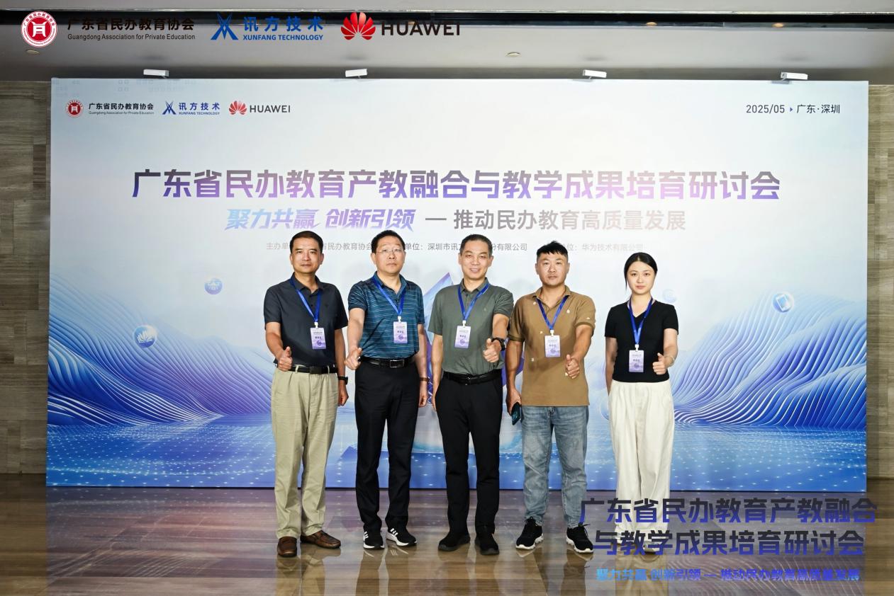 本网讯(记者 黄烁)5月15日下午,以“聚力共赢·创新引领”为主题的广东省民办教育产教融合与教学成果培育研讨会在广东深圳举行。本次研讨会由广东省民办教育协会主办、深圳市讯方技术股份有限公司承办、华为技术有限公司支持,来自广东省46所民办高校、职业学校的学校领导、院长、专业骨干教师以及讯方公司业务骨干、华为公司技术骨干等100余人齐聚一堂,共同探讨民办教育深化产教融合的经验和创新之路,助力民办教育高质量发展。电子信息工程学院/通信工程学院曹英烈副院长、自动化教研室主任等一行5人参与此次研讨会。
