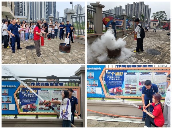 在体验环节,消防员现场演示了灭火器、消防水枪的规范操作,同时穿插讲解火场逃生等实用消防常识。随后,消防员指导同学们亲身体验灭火器材的使用,学员们踊跃参与,在实践中直观掌握应急技能。