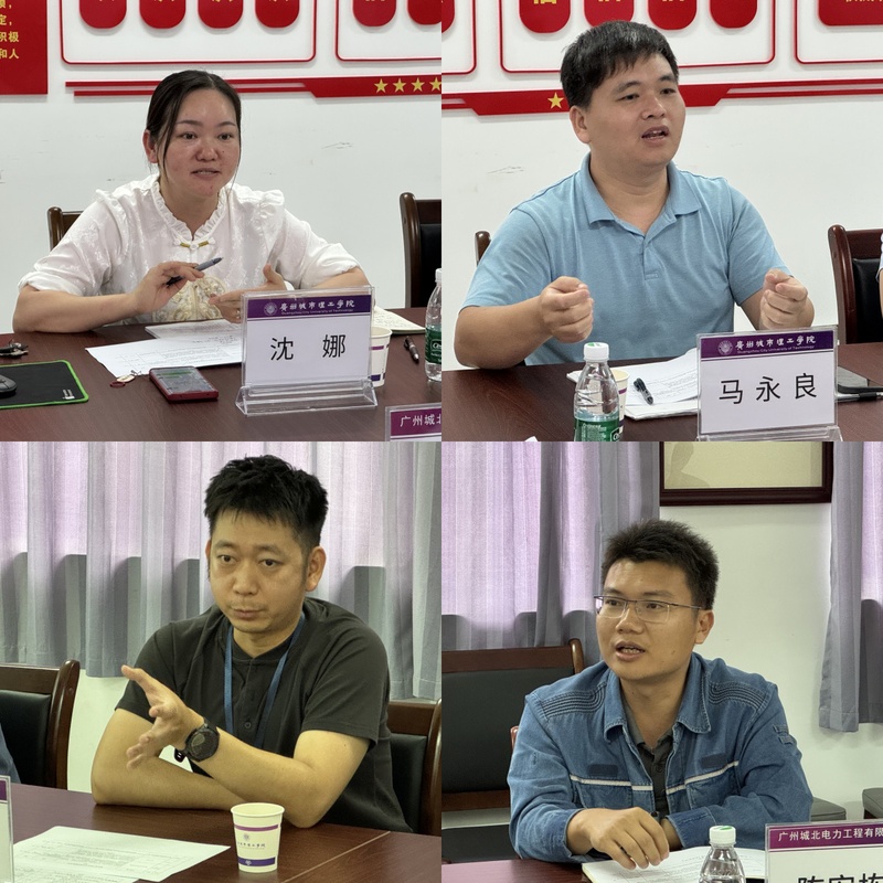 广州城北电力工程有限公司相关技术负责人分别介绍了企业在电力工程领域的技术研发重点和实际应用需求,双方围绕“配电房设备带电清洗”“配电自动化设备”“并网前边缘网关调试要求及过程”等研究技术方向展开探讨。电气工程学院教师代表结合学院科研团队的研究方向和技术积累,就各项技术难点与企业进行了交流。
