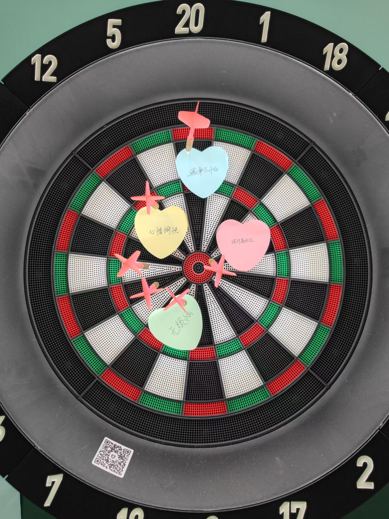 5月24日,学校“525”心理游园会顺利举行,建筑学院创新设计了多种飞镖玩法,其中“指哪打哪心愿镖”形式最受欢迎。参加活动的同学首先在便利贴上写下自己的心愿,然后用飞镖扎向它,寓意着用行动去实现梦想。这也考验大家的精准度和方向感,每一次准确命中目标都能带来满满的成就感。在轻松愉快的氛围里,同学们释放压力、放松心情,关照内心,感受游戏中的成就感。建筑学院邓子杨同学表示,“通过这次飞镖活动,我发现原来解压可以这么简单又有趣,以后会多参加各类的心理主题活动,关注自己的心理健康情况,全面提升自身身体和心理素质。”