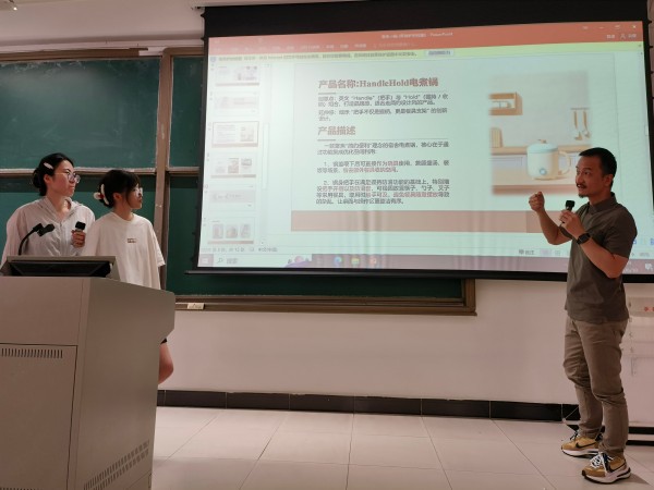 梁志亮结合企业实际生产与市场需求,对学生的课程设计方案进行了细致点评。他围绕产品创新性、技术可行性及市场转化潜力等维度,提出了多项实用性强、紧扣行业痛点的优化建议,帮助学生精准把握设计落地的关键路径。