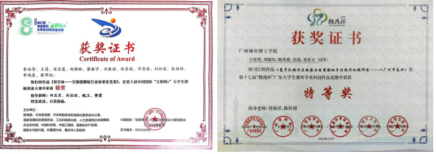 中国国际大学生创新大赛国赛银奖和“挑战杯”省赛特等奖(魏卫 陈传禧 提供)