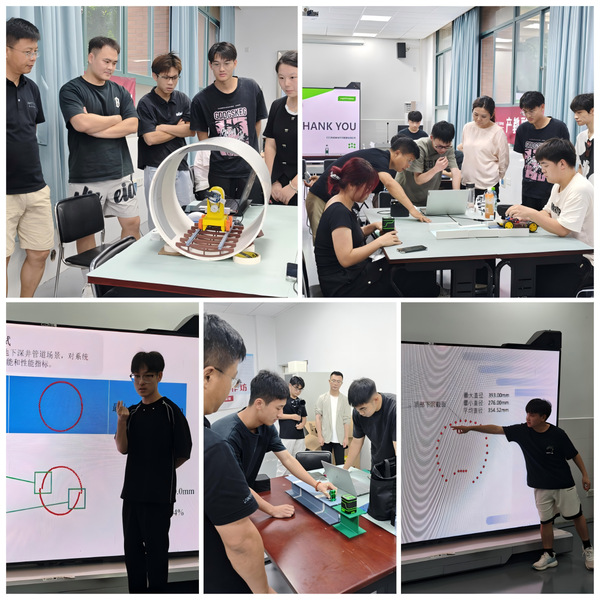 本学年的智建工作坊Ⅲ以“传感器与智能测量”为主题,旨在让学生掌握传感器基本原理与应用,设计可用于建造领域的智能测量工具,如检测隧道内壁变形情况、检测管道内壁平整度、焊缝质量等。课程主要采用讲授、实验、讨论和项目驱动相结合的教学模式,结合建筑场景,激发创新思维。通过产教融合、协同育人,将前沿技术与工程实践结合,在智能建造行业转型发展中培养复合型人才。