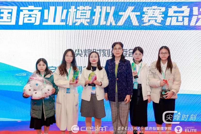 彭玉莲(左三)指导学生参加“尖烽时刻”全国商业模拟大赛(彭玉莲 提供)