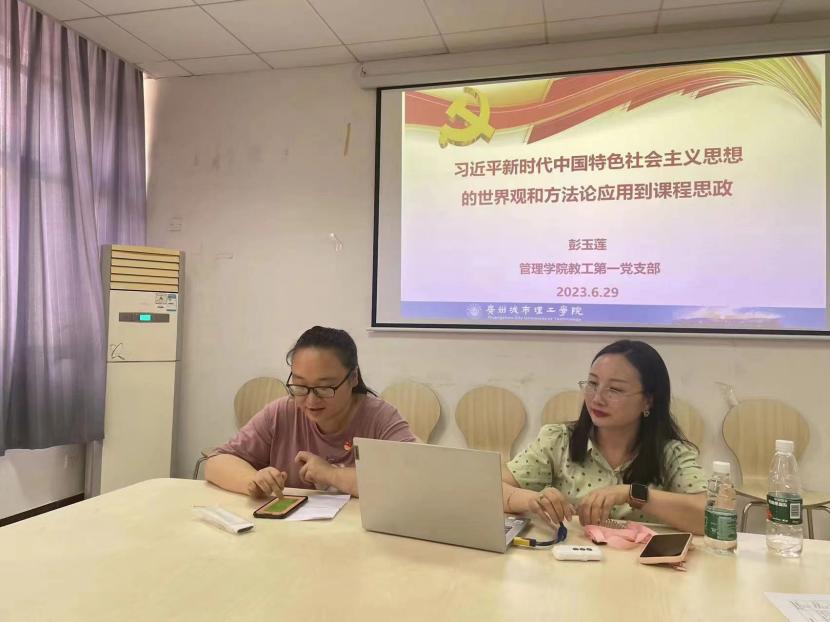 彭玉莲(右)在党支部开展专题研讨活动(彭玉莲 提供)