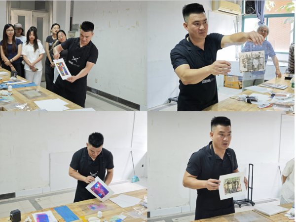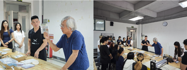 活动伊始,张珂参与示范环节,他展示了凸版创作的基础技法,以平易近人的方式瞬间拉近了领导与学生的距离,营造出轻松、包容的创作氛围,为后续活动奠定了温暖而专业的基调。