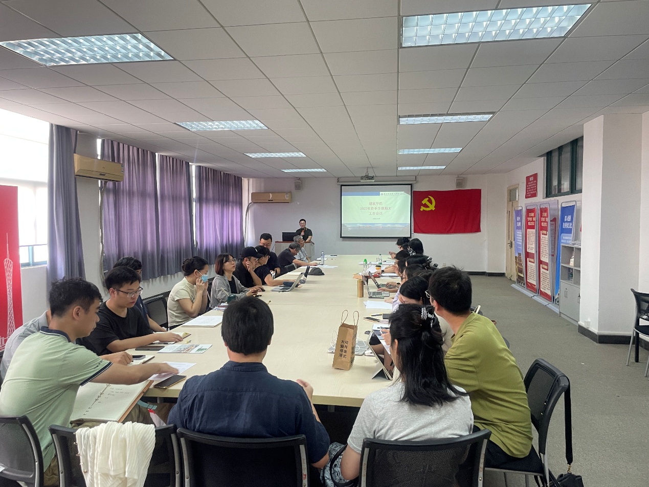 本网讯(记者 陈磊)6月30日上午,建筑学院在A10-207召开2025年春季学期期末工作会议暨教工党员大会,重点对暑期本科教学合格评估工作进行动员和部署。建筑学院院长陆琦、学院书记陈磊、副院长吴桂宁和全院教职工参加会议,会议由陈磊主持。