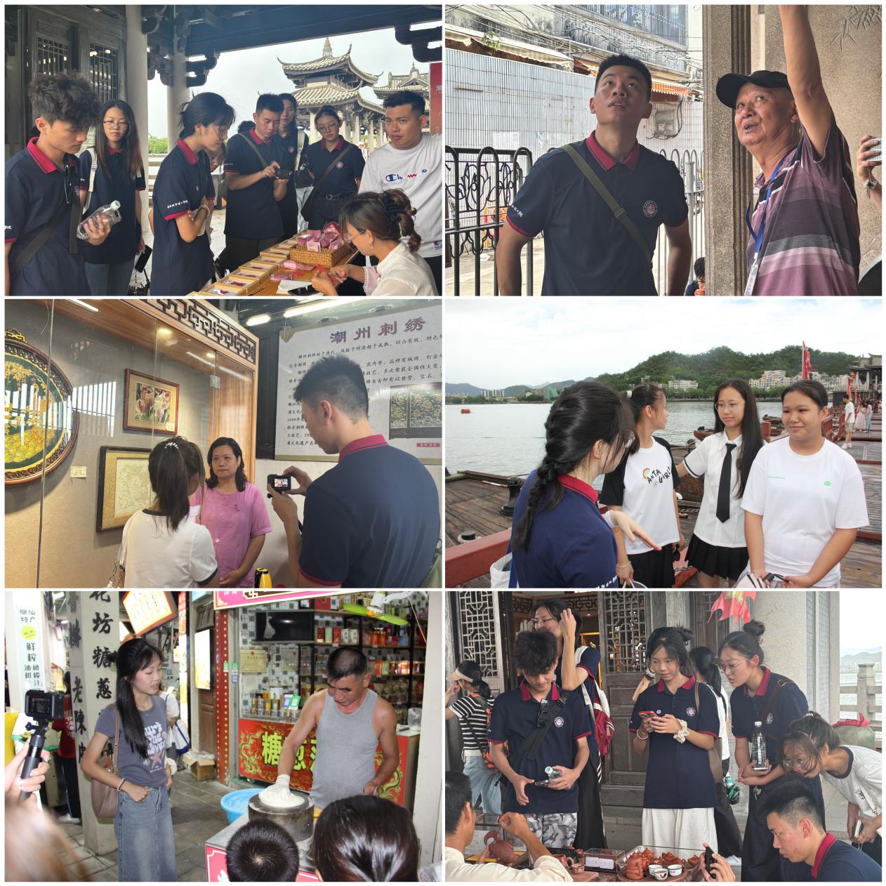 为深入了解当地文化,研学团队采访了潮绣、剪纸、功夫茶、木雕等非物质文化遗产的传承人和当地导游、学生、游客等不同群体。队员们对于此次研学之旅感触颇深,这次研习活动不仅让课本上的潮汕文化变得可触可感,更通过实地考察与团队研讨,深化了对地方文化多样性的理解。每一块石板、每一针潮绣都藏着故事,这种跨文化的研习让大家看到传统文化在当代的鲜活生命力。2024级会计学(注册会计师)陈雅潼说到:“从潮州的传统坚守到汕头的开放交融,潮汕文化的生命力,正藏在这可触可感的砖瓦故事里。”2024级会计学(审计ACCA双语)沈怡欣说到:“作为一个潮汕人,漫步潮州古城,广济桥上的石梁载着千年商埠的记忆。汕头小公园骑楼群里,老茶客用盖碗冲一壶凤凰单丛,茶香混着蚝烙的焦香漫过街巷……潮汕,这片南粤的一隅之地,一直以最古朴的方式,将它从古至今的文化传承下去。”