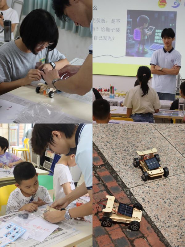 10日至12日,实践团开展了为期三天的光伏科普系列活动。首日的基础知识讲座中,团队成员创新性地采用“光伏魔法课堂”的形式,通过太阳能发电实验箱、光伏原理动画等教具,向82名社区儿童展示了光电转化过程。第二天的实践环节,孩子们分组组装光伏小车,在团队成员指导下完成电路连接、机械组装等工序。当一辆辆小车在阳光下开始运行时,现场响起了孩子们的欢呼声。此外,活动还设置了“光伏知识竞赛”环节,通过趣味问答巩固学习成果,活动最终评选出了10名“光伏小达人”。
