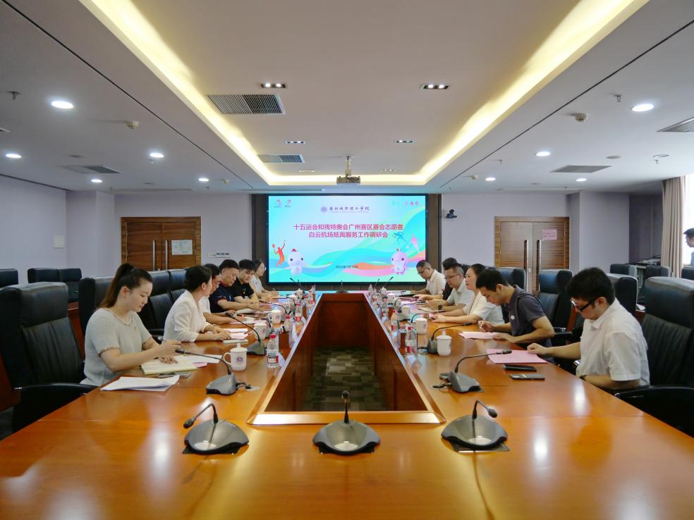 本网讯(记者 周梦思)为高质量推进第十五届全国运动会和全国第十二届残疾人运动会暨第九届特殊奥林匹克运动会广州赛区白云机场抵离服务工作,7月16日,广州市执委会志愿者部驻会副部长魏晓丽,接待部抵离服务处处长邱辉欧一行莅临我校调研。我校党委副书记、副校长刘洊波,党委组织部部长赵永林,校团委书记及相关人员参加调研会。