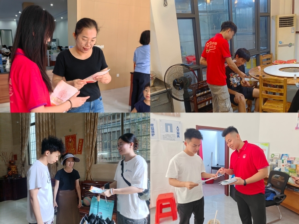 在7月15日至18日的下乡服务阶段,宣讲团深入社区与家庭,通过“定点咨询+精准入户”双轨模式推动政策精准落地、温暖人心。在南庄镇社区服务站,身披红色志愿服的成员们设立政策咨询点,热情接待办事群众,发放《广东省学生资助政策简介》《生源地信用助学贷款》等手册,并耐心解答助学贷款申请条件、还款期限等普遍关心的高频问题,确保群众对核心政策了然于心。同时,宣讲团与社区工作人员紧密协作,针对有子女就学的家庭开展精准入户走访。成员们深入南庄村高中毕业生家中,不仅详细讲解各项资助政策,更分享大学生活经验与职业规划视野,在知识的传递中展开一场青春的对话;他们悉心倾听学子心声,回应未来憧憬,旨在点亮逐梦路上的微光,助力青年勇敢奔赴广阔天地。这一阶段的服务,真正让政策“入户”更“入心”。