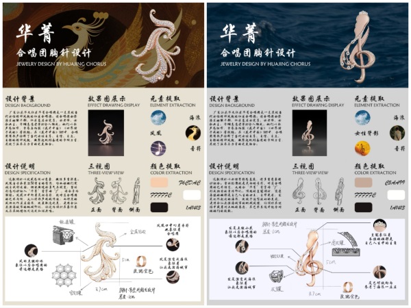 胸针设计终稿展板(张文馨 刘洁瑜 提供)
