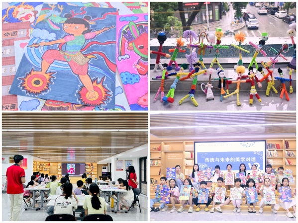 基于前期调研成果,实践团在华文社区组织开展了一系列实践活动。在AI非遗美育课程中,实践团以嵌瓷、英歌舞等非遗项目为核心载体,通过“理论讲解+互动创作+科技赋能”的三维教学模式,生动阐释非遗项目的历史渊源与艺术精髓。课程引导青少年以非遗元素为灵感,设计平面绘画与立体手工制品,并创新转化为钥匙扣、冰箱贴等生活化文创产品,实现“非遗技艺——创意设计——生活应用”的转化链条。课程尾声的AR互动环节,运用人工智能技术将静态作品转化为动态影像,通过虚实融合的沉浸式体验,使非遗文化以科技化、趣味化的形式融入日常生活场景,有效提升了青少年对传统文化的认同感与传承意识。