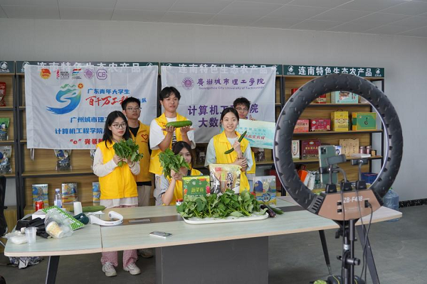 实践团成员直播宣传农作物(郭依纯 摄)