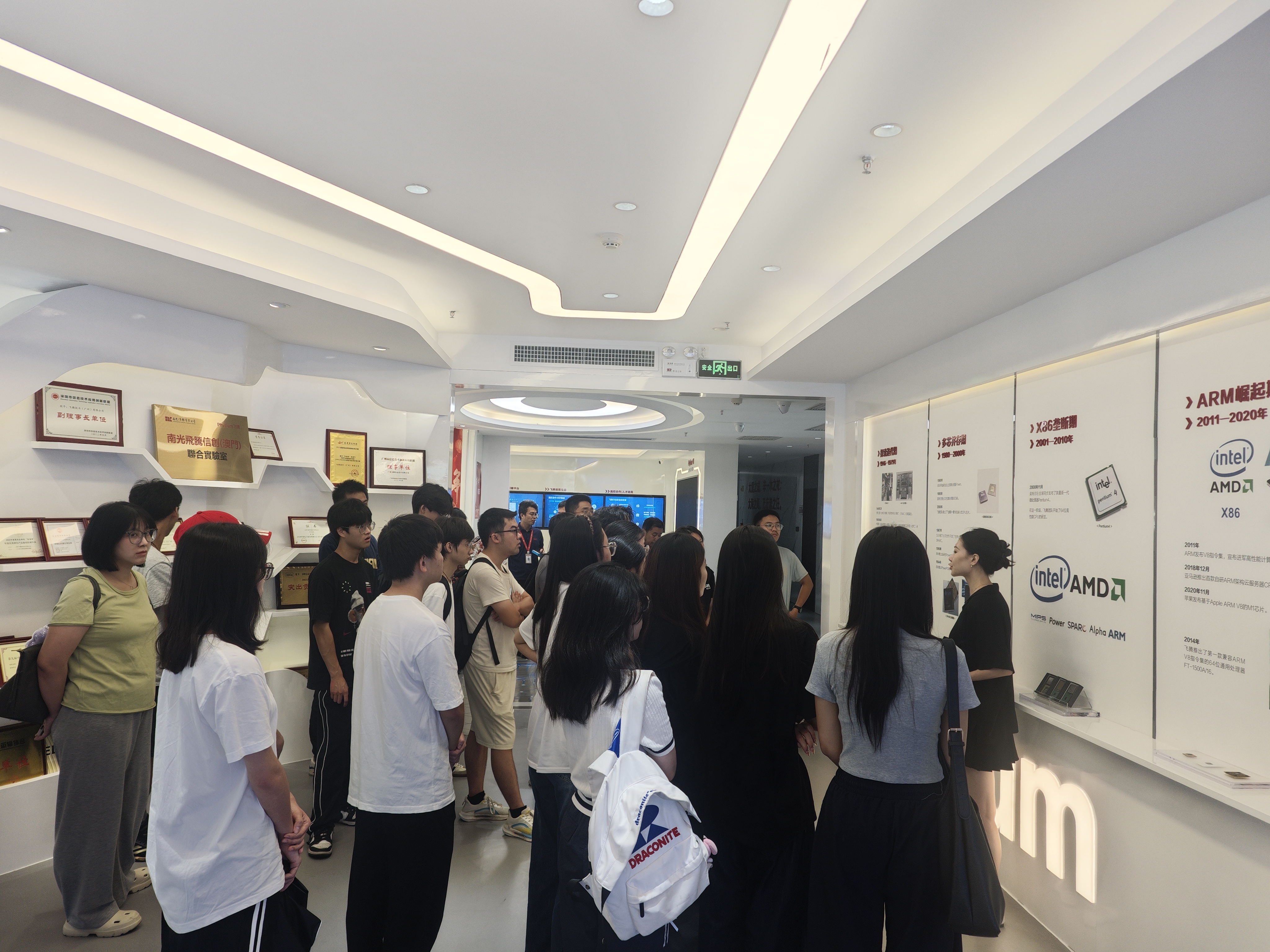 本网讯(记者 郭榆)7月30日,计算机工程学院/大数据学院信创实验室组织“麒麟揭榜挂帅竞赛组”师生一行28人前往飞腾技术(广州)有限公司、广东汉为信息技术有限公司、金其利科技有限公司、归谷科技园海归之家、麒麟软件有限公司广州分公司开展系列参观活动。本次活动旨在通过实地考察与交流,深入了解行业前沿技术,促进产学研深度融合,助力小组成员拓展视野、提升实践能力,搭建产学研合作桥梁,增强团队凝聚力。