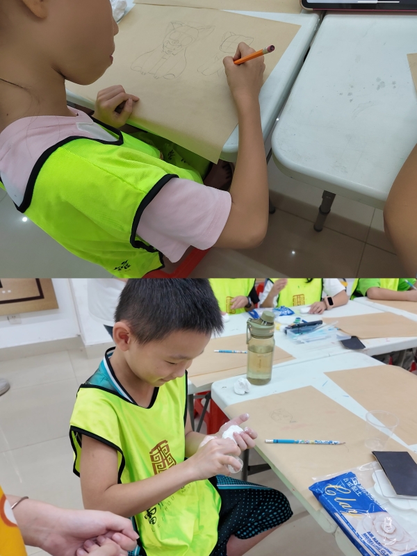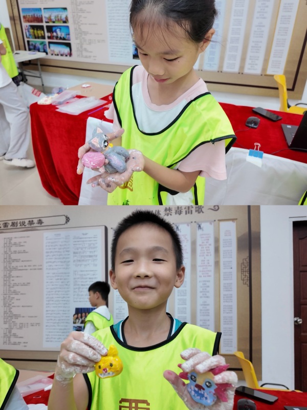“手工泥塑体验”环节将活动推向高潮。在实践团队队员和博物馆工作人员的悉心指导下,孩子们领取了石塑黏土,化身小小“非遗传承人”。揉捏、塑形、刻画、修饰……一块块平凡的陶泥在孩子们专注的小手中逐渐“活”了起来。活动现场充满了创造的乐趣与专注的氛围,孩子们互相交流心得、展示半成品,欢声笑语不断。从“认知”到“体验”,石狗文化不再遥远抽象,而是化为指尖可感的温度与形态。