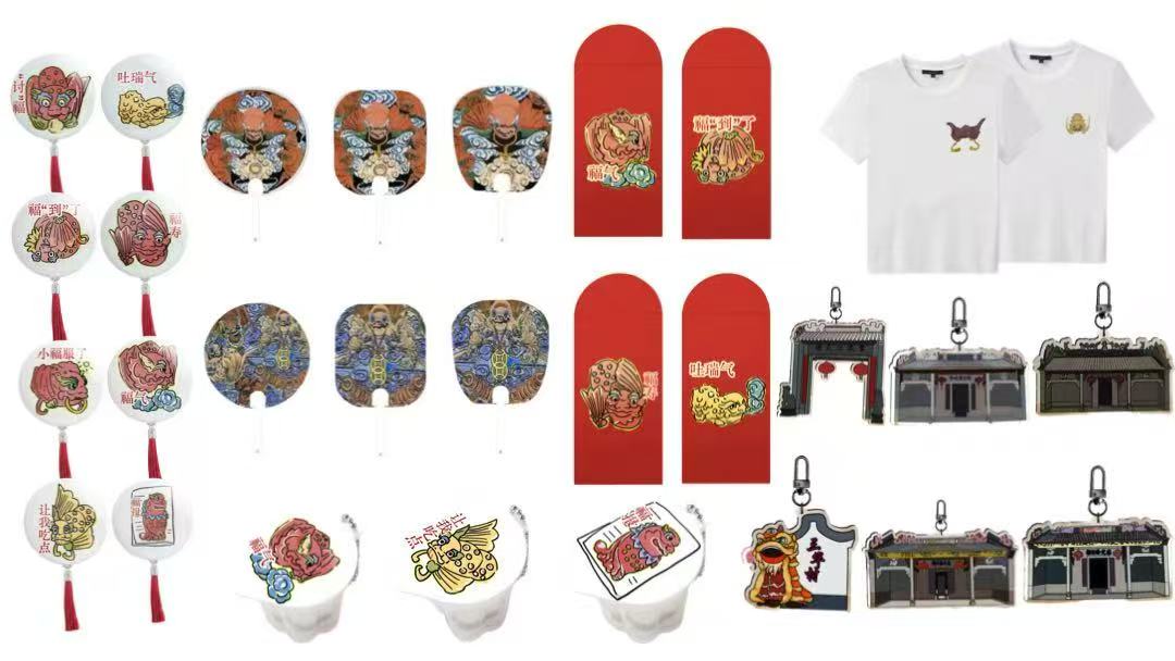 针对三华村打造特色文旅品牌的需求,Young实践团以三华村古建筑中常见的灰塑蝙蝠形象为灵感(“蝠”与“福”同音,象征福气),将“小福”确定为核心IP形象。文创组同学设计出了“小福服了”“福报”“讨福”“福气”“福寿”“福到了”等衍生形象,采用圆润线条与浓烈色彩,塑造可爱呆萌风格,并将其应用于扇子、文化衫、红包等多种日常用品。张颖同学表示,这些IP形象及文创产品既能拉近距离、强化情感联结,又能通过实用功能传播文化,提升品牌影响力。