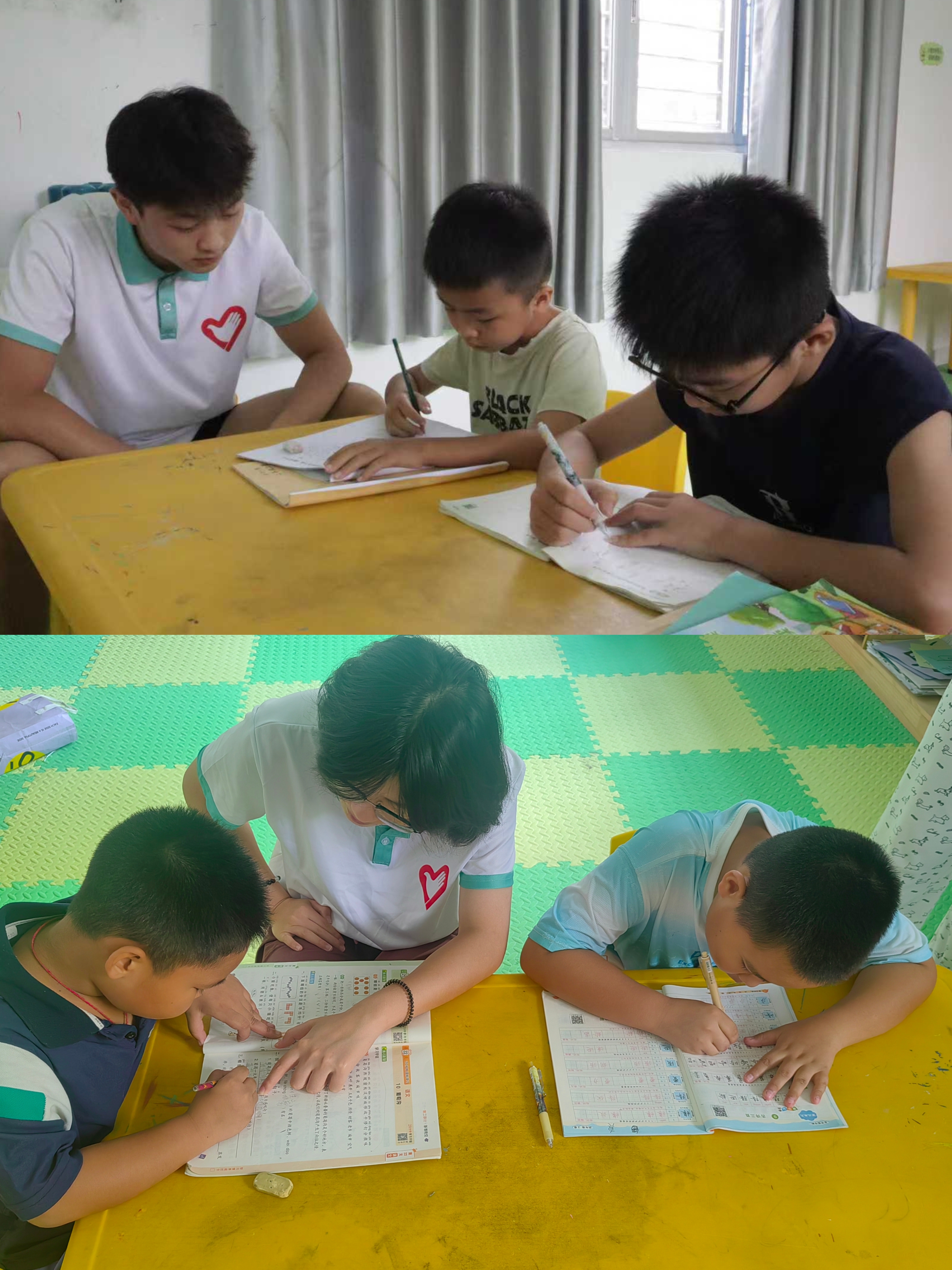 在开展普法教育与趣味活动丰富暑期生活的同时,实践团还为九潭村青少年儿童提供作业辅导服务,用专业与耐心为孩子们的暑期学习保驾护航。成员们根据不同学科特点与孩子的理解程度,采用举例说明、分步拆解等方式讲解每一个知识点,帮助孩子们理清解题思路。