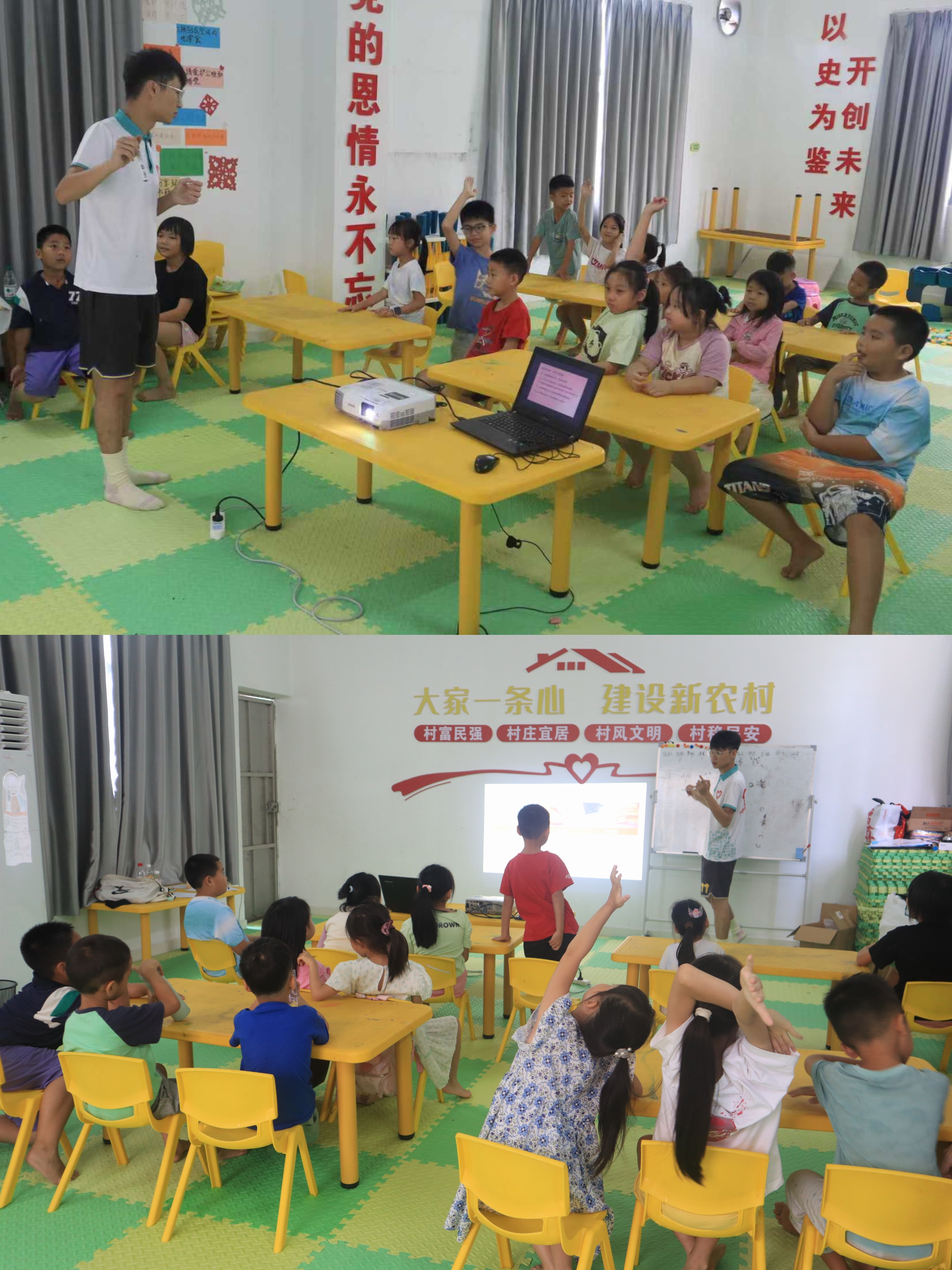 实践团针对九潭村儿童们的实际情况,筹备了内容丰富、形式多样的活动课程。法治教育中,成员们通过动画、情景表演、知识问答等,带小朋友学习《中华人民共和国未成年人保护法》《中华人民共和国民法典》中的相关权益知识,模拟应对“权益受侵”与家庭矛盾。开展预防校园欺凌课,《中华人民共和国治安管理处罚法》相关条例情景模拟,帮助小朋友懂应对、知边界。道路交通安全课上,带领小朋友们识标志、练过马路。网络安全课中用动画、游戏教学。防拐骗课中通过演讲、角色扮演等方式,帮助孩子掌握防拐技能。