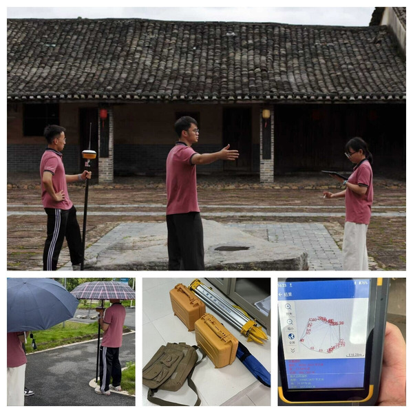 次日清晨,突击队分组开展全域地形测绘。借助RTK测量技术,他们在村落关键区域布设多个控制点,系统采集建筑立体坐标与高程数据。测绘过程中,队员还手绘记录了砖雕、木构、瓦作等特色构造细节,为后续复原设计提供依据。经过连续两日作业与数据处理,团队最终绘制出一幅全域彩色导览图,清晰标注艺术公社、古树观景台、现代咖啡馆等打卡点位和推荐游览路线。