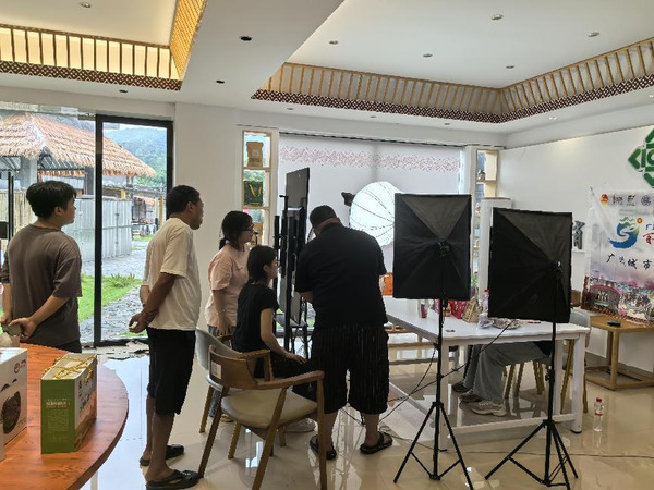 工作人员和团队成员进行直播准备(罗文娟 摄)