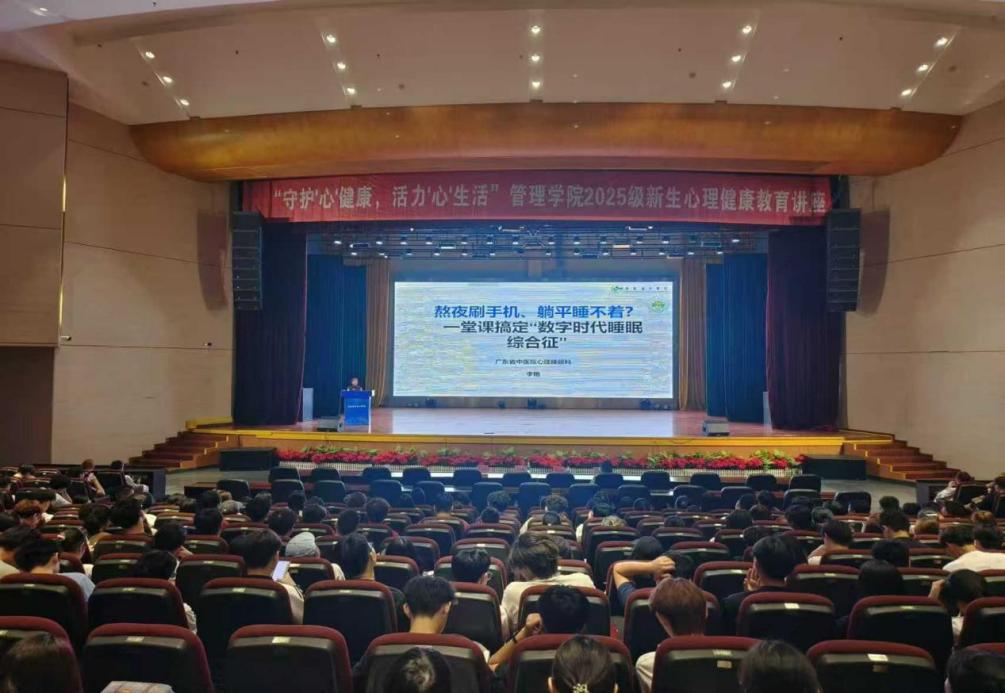 讲座特邀广东省中医院心理睡眠专科带头人、主任医师、医学博士、博士生导师李艳主任担任主讲嘉宾。李艳以“熬夜刷手机、躺平睡不着?一堂课搞定数字时代睡眠综合征”为主题,结合真实病例,从心理、饮食、运动、作息等多维度深入剖析了大学生常见的睡眠与情绪问题,并分享了中医调理情志、促进心身健康的实用方法。