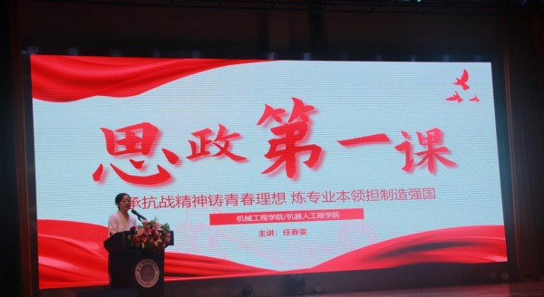 最后,任春雯为新生们讲授了主题为“赓续抗战精神,勇担智造使命”的思政第一课。她以中国人民抗战胜利纪念日为契机,强调唯有铭记历史、传承精神,才能在新时代的征程中勇担使命。机械工程学院/机器人工程学院的学生要以抗战精神为“精神坐标”,筑牢科技报国的理想信念;以专业学习为“实践路径”,锤炼科技强国的过硬本领;以服务社会为“价值导向”,践行科技为民的初心使命。