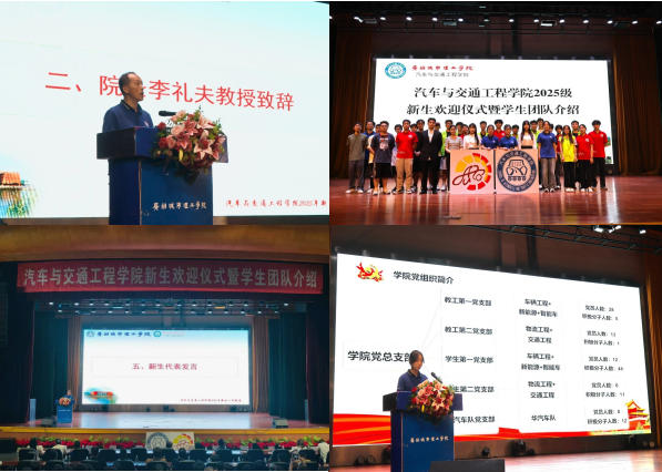 9月2日晚,学院2025级新生开学典礼暨学生团队介绍在学生活动中心举行。院长李礼夫代表全院师生欢迎新同学,他从汽车与交通行业百年变革切入,强调人工智能、新能源、智慧出行等给行业带来的新机遇,勉励同学们夯实专业基础、树立强国志向。副院长钟玉华为新生介绍了学院概况、教务员刘慧婷介绍了整体教务规划,使新生清晰了解学院相关配置。随后,新生代表发言,学生团队依次进行招新介绍,党总支、团委学生会、科技创新社团集体亮相,分享品牌活动与竞赛成果,吸引新生踊跃报名。