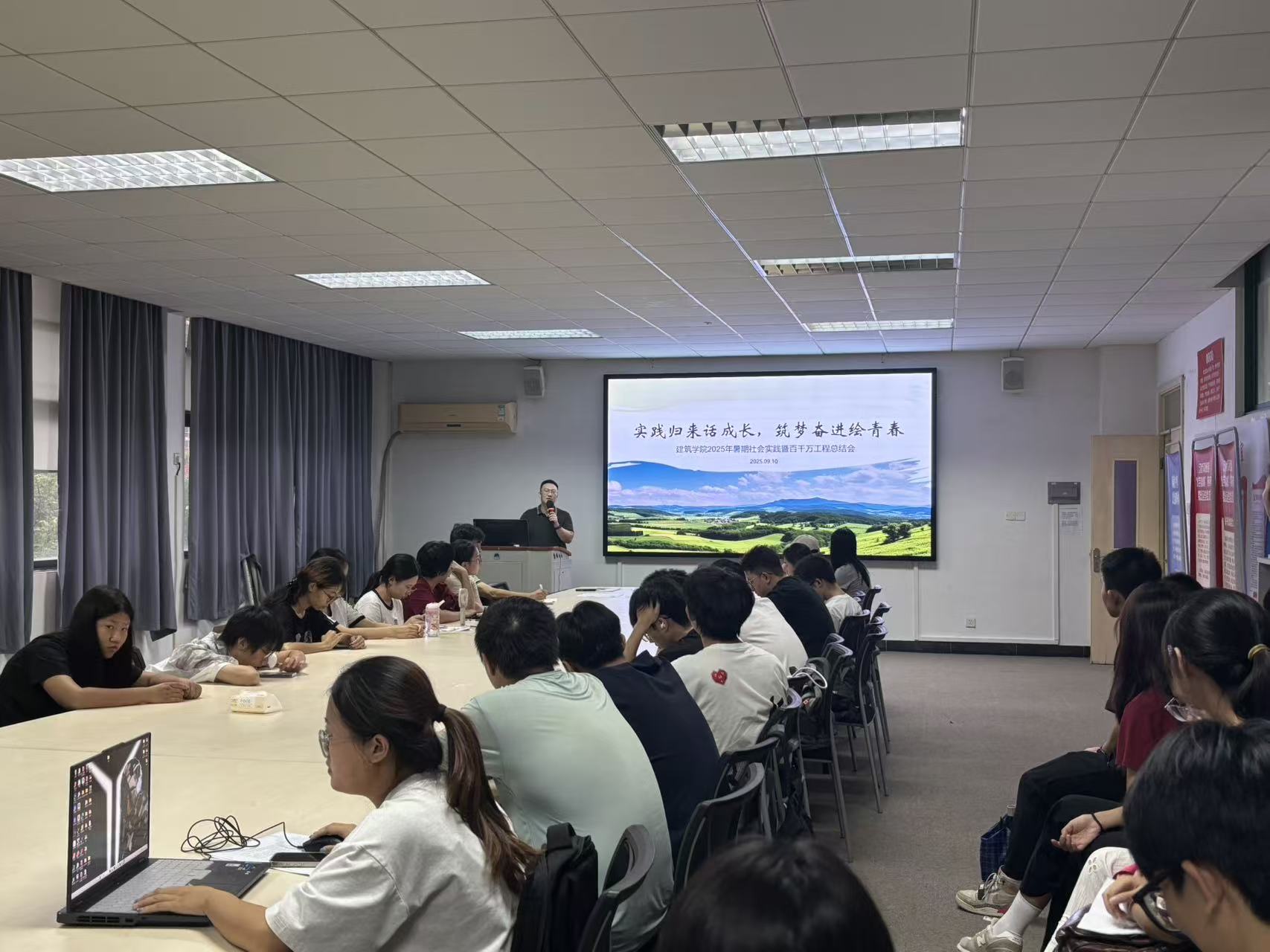 本网讯(记者 陈磊)9月10日下午,建筑学院在A10-207举行“实践归来话成长,筑梦奋进绘青春”2025年暑期“三下乡”社会实践活动暨“百千万工程”突击队行动总结会。学院书记陈磊、实践团队指导老师、各实践团队学生代表参加总结交流活动。