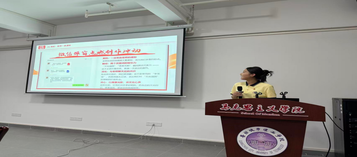 一等奖团队代表魏云婷同学分享创作感悟:“从脚本到成片,我们把课堂上学到的文化强国理论‘转变’为镜头语言,真正体会到‘文化自信’不是抽象的口号,而是可触可感的烟火气。未来,我们会继续用影像记录时代,让青春在文化强国的赛道上跑出加速度。”