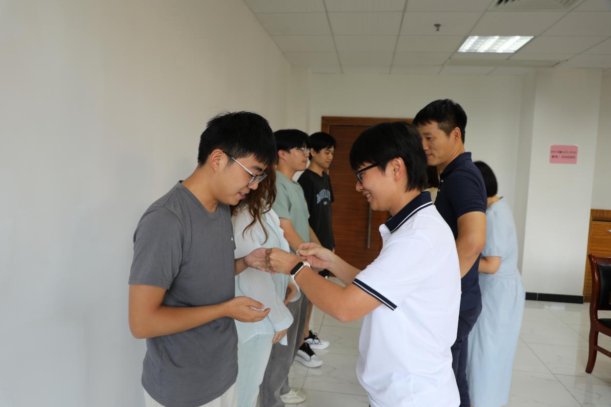 随后,在场导师为同学们佩戴校徽,增强其归属感和荣誉感。会议结束后,各导师带领学生走访对应学院,进一步交流研究方向与学习计划。
