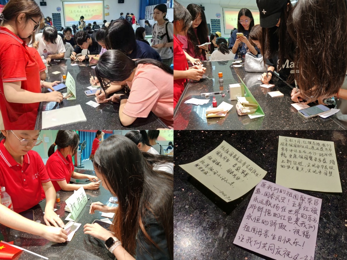 最后环节是“我为祖国喝彩”,同学们将满腔热忱化为祝福,认真写下对祖国祝福的文字,字里行间满是对祖国壮丽山河的赞叹、对国家发展成就的自豪,以及对祖国未来的美好期许。