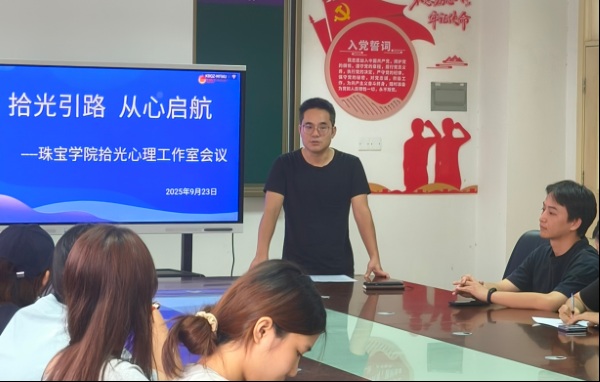 本网讯(记者 严志洋 叶颖潼)9月23日,秋意渐浓,珠宝学院拾光心理工作室2025年新成员培训会及心理研讨会在A7-212会议室温暖启幕。学院党总支副书记姚勇与同学们一起共同开启一段关于倾听、陪伴与成长的暖心旅程。