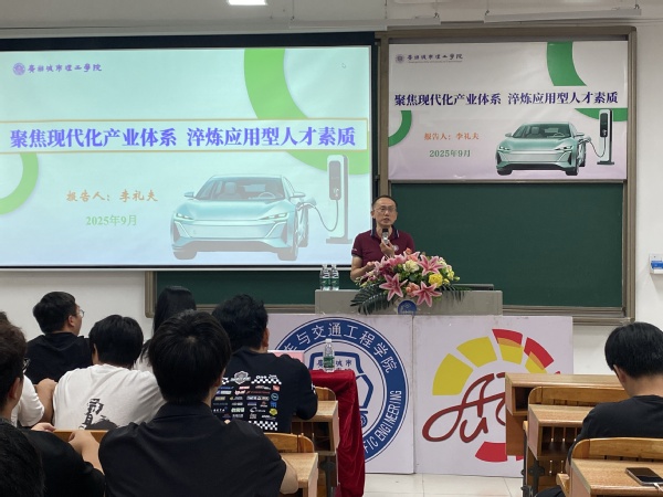 本网讯(记者 郑锦淮)为深入贯彻科教兴国、人才强国与创新驱动发展战略,服务新质生产力发展,推动高水平应用型人才培养工作,9月26日晚,汽车与交通工程学院院长李礼夫在A5-102教室为师生讲授了以“聚焦现代化产业体系,淬炼应用型人才素质”为主题的思政第一课。