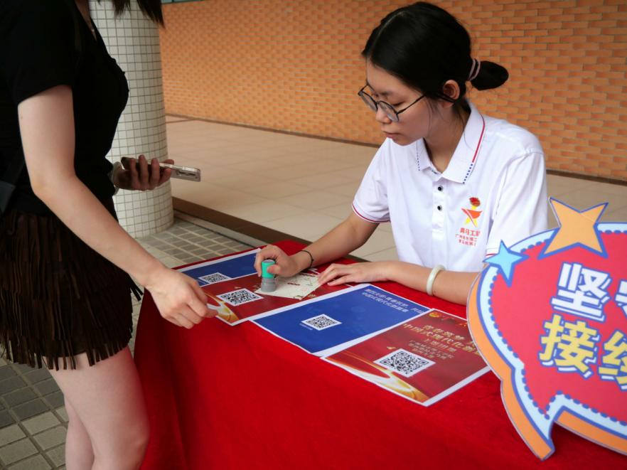 学生进行答题集章活动(校团委宣传部 谢靖美 摄)
