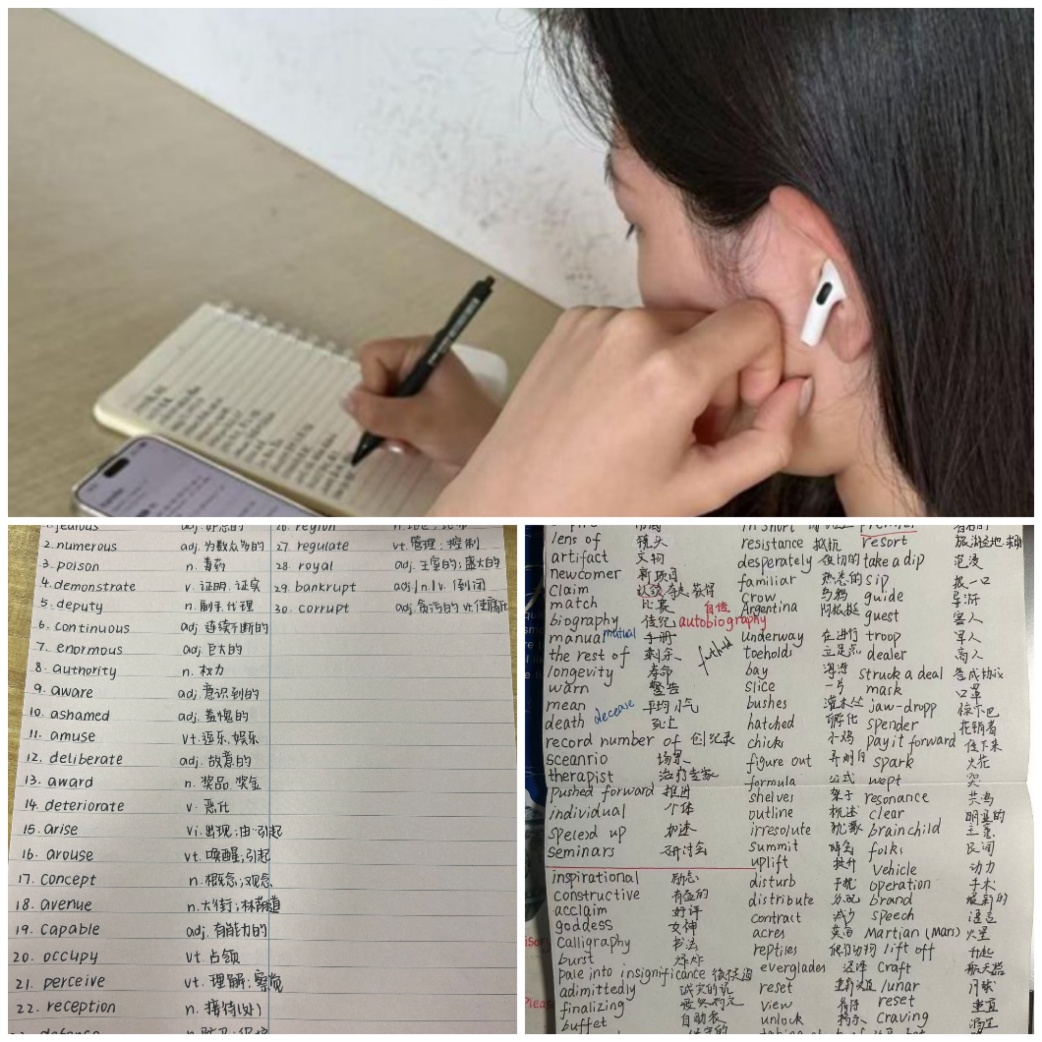 2025级国际经济与贸易(双语特色班)专业姚君艳说:“每天跟着录音练,让语调更自然,还能在反复读句子中不知不觉记语法,无需死记硬背,坚持下来英语水平明显提升。”2025级会计学(ACCA审计双语班)专业朱颜颜分享道:“晨读让我养成了规律专注的学习习惯,词汇量稳定增长,通过分析例句,我对词语用法和语境有了进一步的理解。”2025级投资学专业高歌谈到:“晨读让我早睡早起,为新的一天充能。每天背四级词汇、读一篇文章能加强记忆、提高效率、助我学习,相信日积月累必能通过四级。”