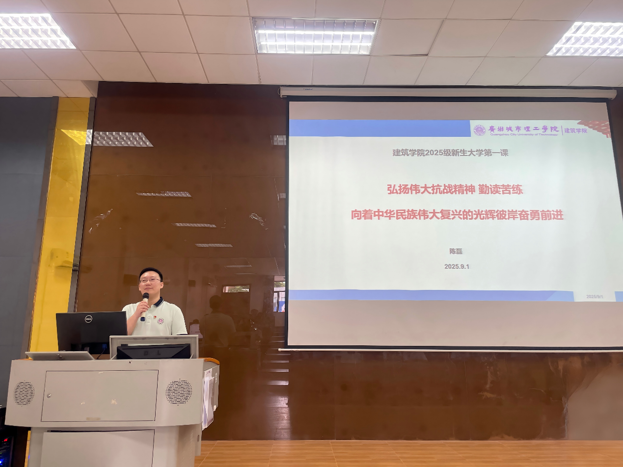9月1日上午,学院书记陈磊以《弘扬伟大抗战精神,勤读苦练,向着中华民族伟大复兴的光辉彼岸奋勇前进》为题讲授思政第一课。陈磊指出,伟大抗战精神,是中国人民弥足珍贵的精神财富,是实现中华民族伟大复兴的强大精神动力。陈磊表示,“未来的中国是什么样子,在于我们怎样书写。为时而作、与国同行,是宏大命题,也能归于最简单的逻辑。希望同学们珍惜大学时光,勤学苦练,弘扬伟大抗战精神,勇担‘刻苦学习、奋发成才、服务人民、奉献祖国’使命。”
