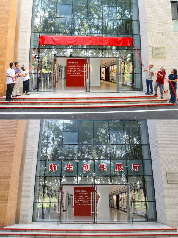 与会领导为师生创作展厅揭牌(许晗星 摄)