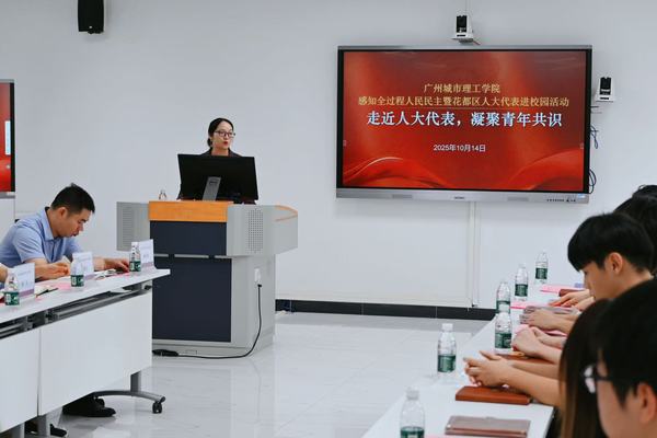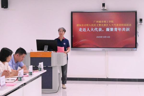 本网讯(记者 蔡晓坤)为深入推进港澳台学生国情教育,帮助青年学子读懂中国特色社会主义民主政治制度优势,10月14日,港澳台事务办公室联合花都区人大常委会秀全街道工作委员会,在行政楼517会议室举办“港澳台学生国情教育暨人大代表进校园”活动。花都区人大常委会社会建设工委(华侨外事民族宗教工委)主任黄海燕、花都区人大常委会秀全街道工委主任梁红等9名区人大代表和3名秀全街道人大政协工作组工作人员出席活动。十三届全国人大代表、我校国际交流与合作处处长/港澳台事务办公室主任兼国际商学院院长安然组织并主持了这场活动。花都区人大代表、我校评建工作办公室主任刘佳,党委组织部/统战部部长赵永林,党委宣传部、马克思主义学院相关负责人及教师代表和18名来自国际商学院、外国语学院、经济学院、计算机工程学院的港澳台籍和内地(大陆)学生代表参与了该活动。