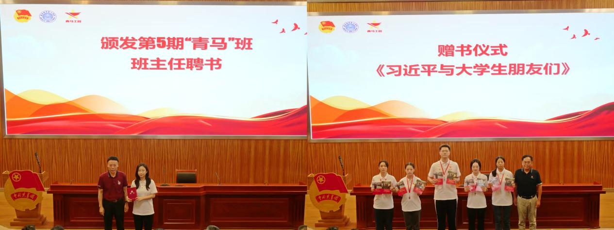 仪式最后,学校党委副书记、副校长刘洊波为第5期“青马”班学员赠送《习近平与大学生朋友们》一书,以此希望青马学子们通过深读经典、感悟思想伟力,从书籍中汲取智慧养分,将其转化为奋进新时代的强大力量。