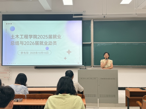 本网讯(记者 王超)为进一步向毕业生提供全方位就业升学指导,助力学子扬帆起航。10月15日下午,土木工程学院2026届毕业生就业动员大会在A5-110教室隆重召开。学院院长季静、党总支副书记李韦华,学校就业指导中心、学院专业教研室相关负责人,毕业班辅导员、班主任及2026届全体毕业生参加此次会议。会议由学院学生工作办公室负责人主持。