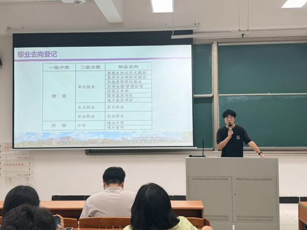 针对毕业生多样化的就业选择,学校就业指导中心马云超对大学生入伍政策进行了系统宣讲和指导,介绍了国家鼓励大学生参军的优惠政策和发展路径。学院辅导员王秋湛则为毕业生提供了毕业去向系统的操作培训,对就业信息填报、三方协议签订等流程作了逐步演示和说明。