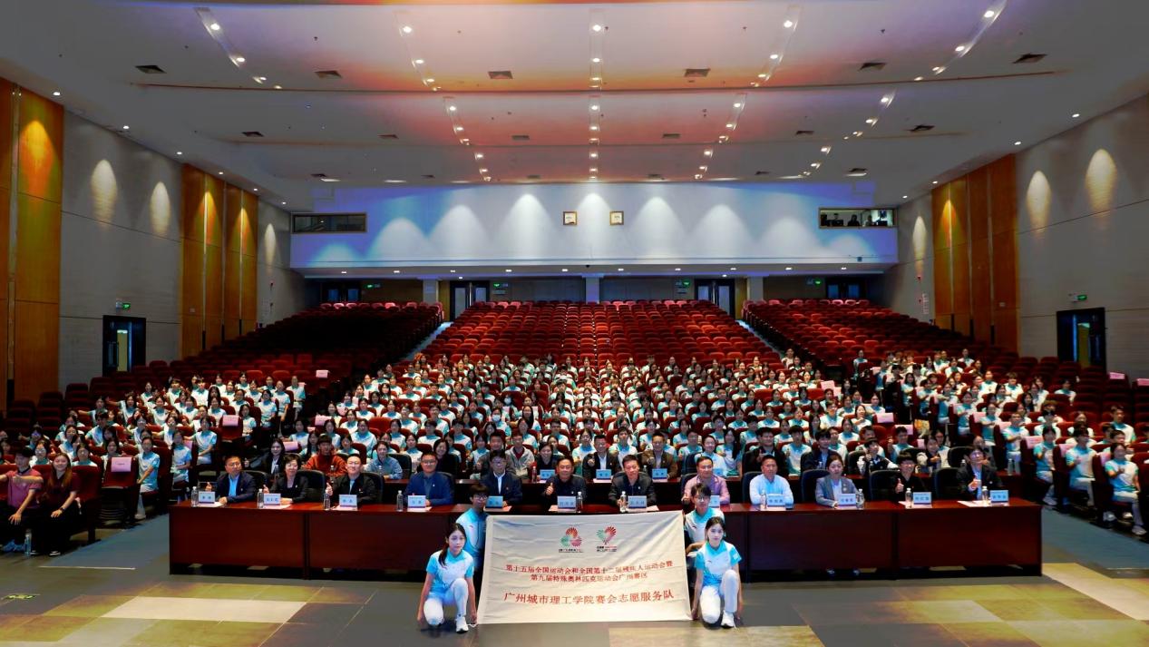 本网讯(记者 周梦思)“为湾区添彩,为祖国争光!为你,更精彩!”10月24日,我校在学生活动中心举行“十五运会和残特奥会”志愿者誓师大会,广州城理“小海豚”们用铿锵有力的青春誓言,宣示着对“十五运会和残特奥会”贡献青春力量的决心。学校党委副书记、副校长刘洊波,党委组织部部长赵永林,党委学生工作部常务副部长汪昊以及各学院党总支书记、机关部处负责人出席大会,与全体志愿者共同见证这一庄严时刻。