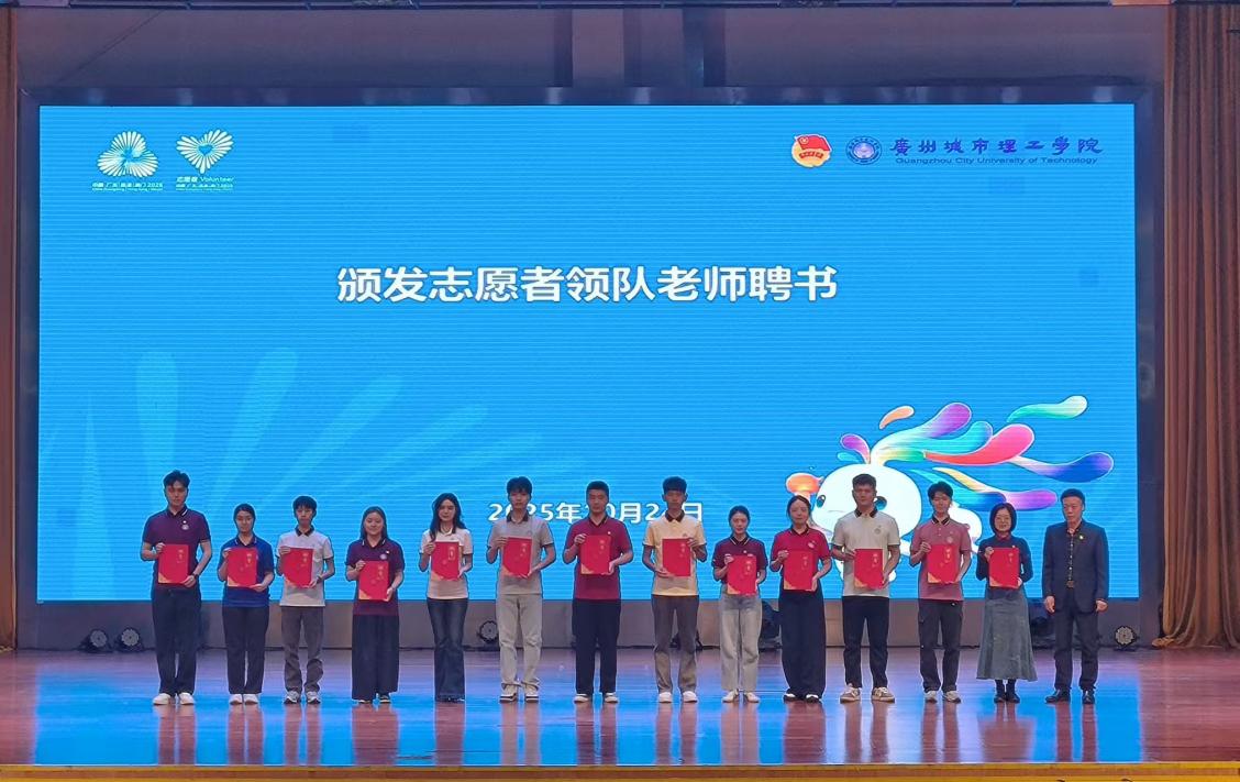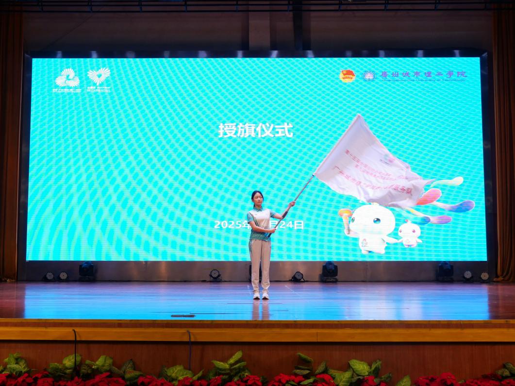会上,为保障赛事服务顺利完成,充分发挥志愿者领队老师的引领作用,学校党委组织部部长赵永林为志愿者领队老师颁发聘书。随后,王羽书记为志愿者队伍代表授旗,志愿者代表江晓珊同学接过旗帜、奋力挥扬,展示了志愿者队伍的昂扬向上的青春风貌。